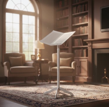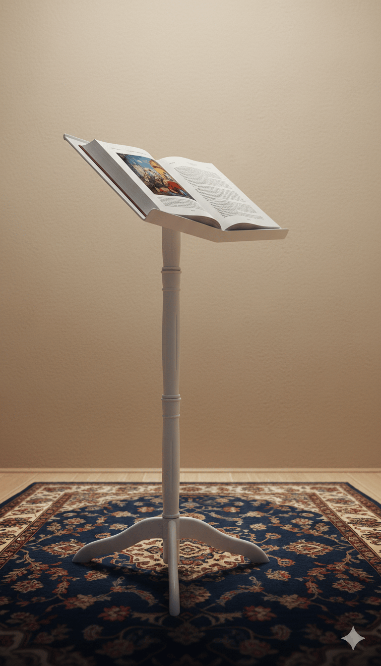 Our flagship product — the Misnad Reading Stand — is crafted from high-quality, lightweight plastic that is strong, easy to clean, and built to last. Its ergonomic angle and stable design allow the book to be positioned at the proper eye level while keeping your head and back comfortable, helping you read longer with less strain.